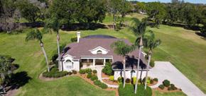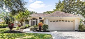 INVITING POOL HOME...24/7 GUARD GATED GOLF COMMUNITY! GOLF COURSE FRONTAGE and spacious driveway. Double door entrance with custom recessed sliding screens, lead you into this remodeled extensively by seller, an artistic visionary...this home is a showcase! Great Room features a wood-burning fireplace and a built-in surround sound system. The kitchen boasts quartz countertops, snack bar with Travertine under counter, and top-of-the-line “Gold Series” Whirlpool appliances! The primary en suite is generously sized, offering a sitting area, trey ceiling, and an oversized walk-in custom closet. Bathroom offers dual above-bowl sinks, granite countertops, indirect under-counter lighting, large walk-in shower and a Jacuzzi garden tub with jets. The split bedroom design leads to bedrooms two and three, sharing a renovated guest/ pool bath. The large lanai features a custom summer kitchen, with a granite built-in snack bar, mini refrigerator, flat-screen TV, and four surround sound speakers. Pool is electric heated for year round swimming! MLS# G5077652 // $574,900.