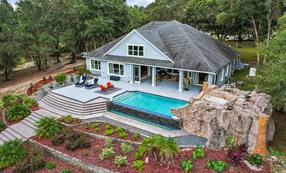 ELEGANT LUXURY AT ITS FINEST in this executive LAKE MYRTLE POOL house on approximately 4.14 acres gated and fenced nestled between Lake Myrtle Shores and Wingspread. You will appreciate the privacy this house offers as you drive through the gate and up to the circular driveway. Upon entering the double leaded glass front doors you will immediately be impressed by the infinity edge grotto pool with waterfall, views of Lake Myrtle and upgraded finishes. This open floorplan has 10-foot ceilings and crown molding throughout the house with porcelain tile floors everywhere except the guest rooms and custom drapes. The formal dining room has 12-foot ceilings, a coffered ceiling and is open to the formal living room that has 16-foot lake front window, custom beams and stone-faced propane gas fireplace.