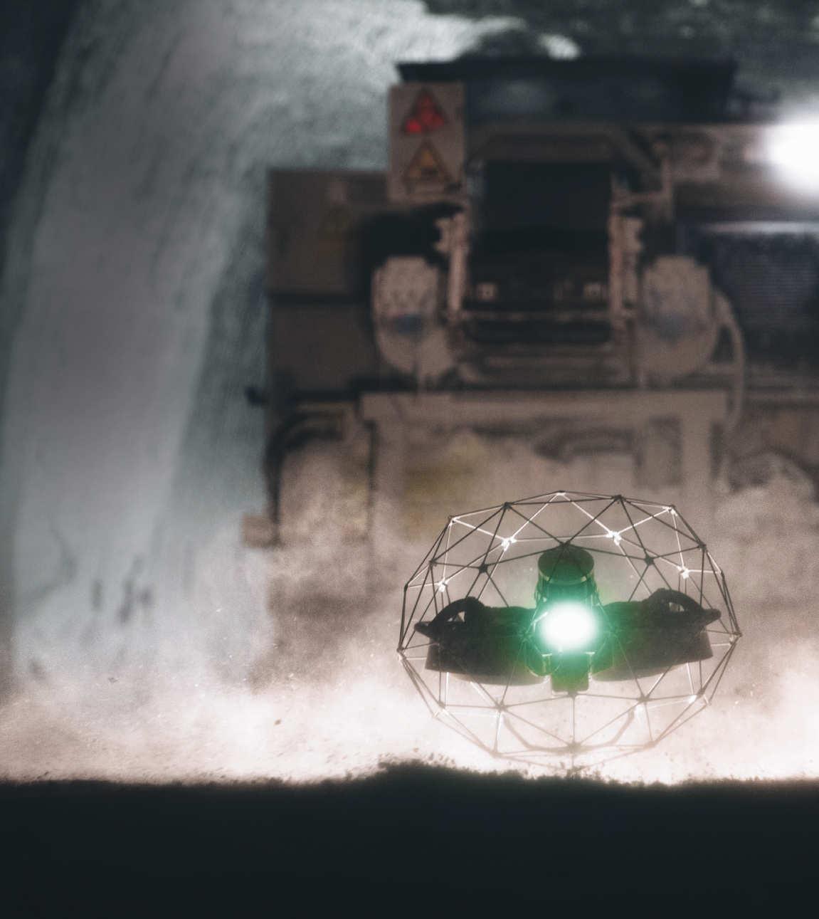 Cover picture: Flyability's Elios 3 drone in action on a mining site
