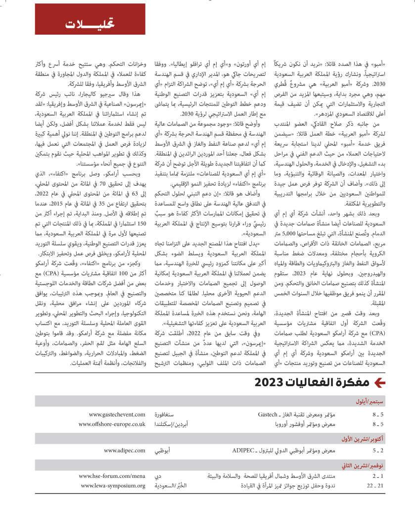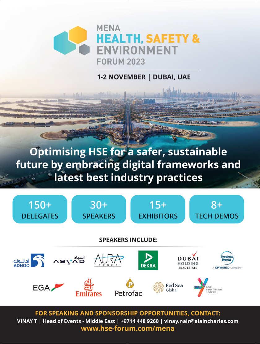 Listings of regional and international events, with previews of Gastech, ADIPEC and the MENA HSE Forum