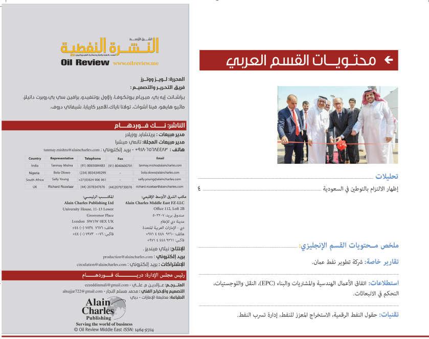 Other issues addressed in this packed issue include alternative maritime fuels, a new environmentally-friendly technology for cleaning oil sludges, the booming EPC market, measurement challenges in EOR and PDO’s new business strategy.