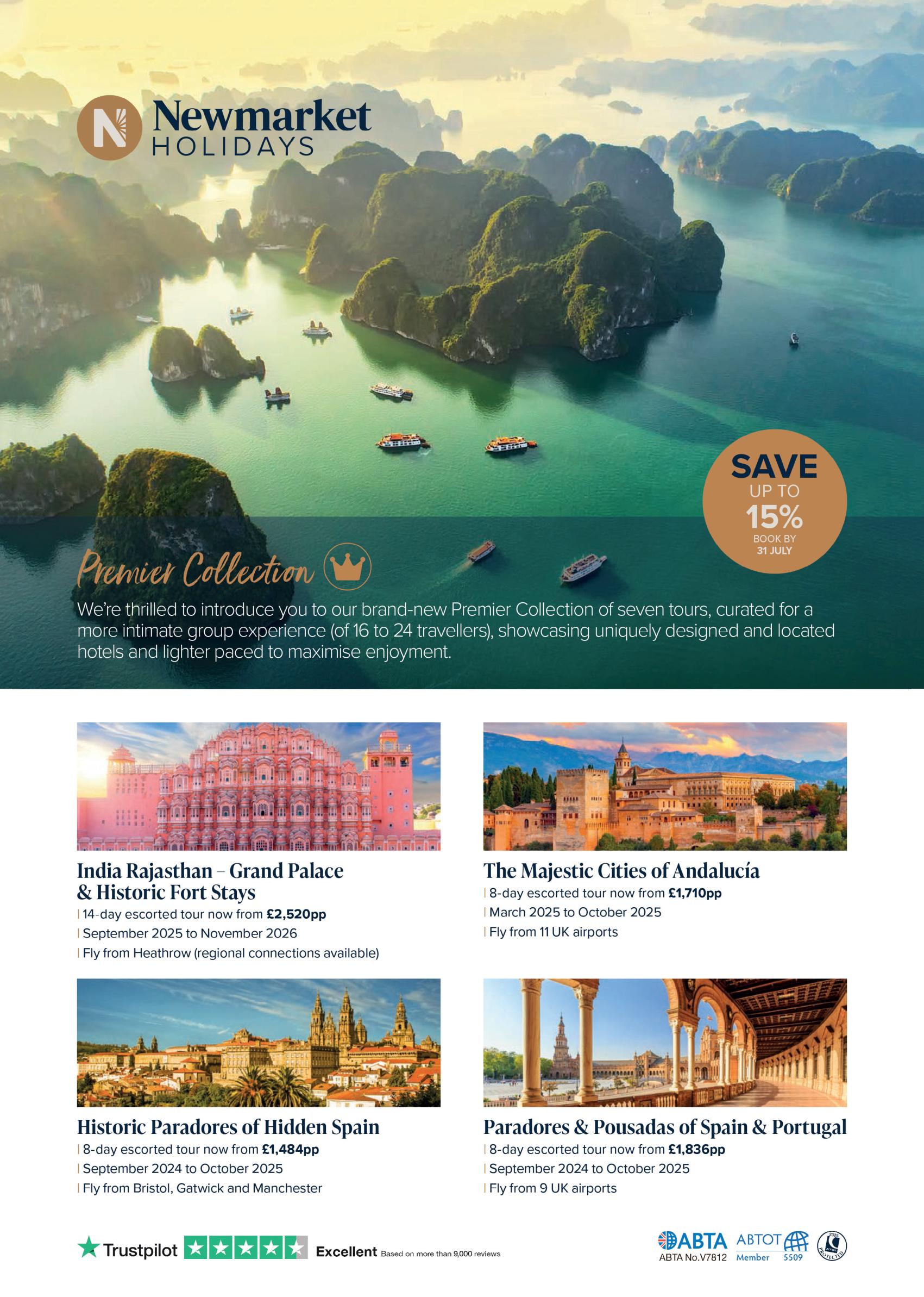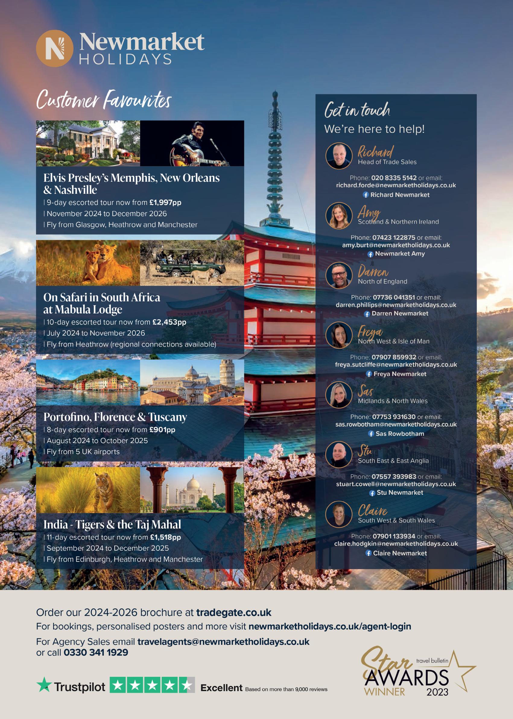 NEWMARKET HOLIDAYS’ Escorted Tours Collection 2024-2026 features 12 new tours and the first-ever brochure inclusion of the newly-introduced Premier Collection. Savings of 15% are on offer to support agent sales of the new brochure, valid on bookings made by July 31st, 2024. www.newmarketholidays.co.uk