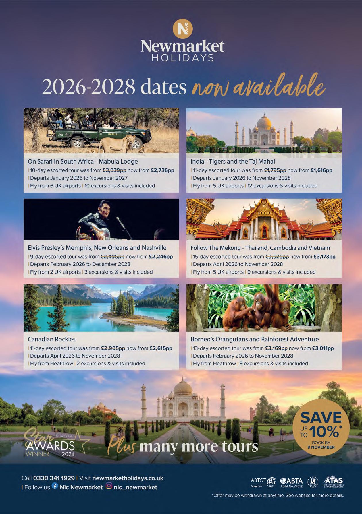 ● AUDLEY TRAVEL’S autumn & winter 2026 incentive, running until December 14th, 2025, will see an agent who books with the tailormade operator win a £10,000 voucher for an adventure of their own, with one runner-up earning a spot on a fam trip to Namibia next year. Trade sales manager Greg Thurston kicked off the incentive. "After much success last year we’ve relaunched the £10,000 booking incentive to help inspire agents to continue with their support as we head into the colder months and a key booking period.”