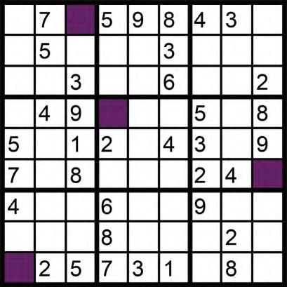 Fill in all the squares in the grid so that each row, column and each of the 3 x 3 squares contains the digits 1-9.