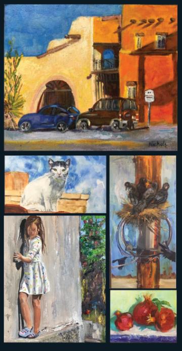 Sharon Holmes is a realism oil painter based in Southern New Mexico. She began painting as a preteen when her brother's arts and crafts instructor offered her the chance to teach some of the craft lessons to the 5-8 year olds in exchange for drawing & painting classes.