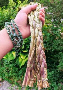 Sweet grass is widely used by North American indigenous peoples from many different Nations. Among many of the Plains Indians it is considered one of the “four sacred medicines“. Though being used for many purposes, its main purpose for many tribes is to attract good spirits. It is also known as the “Hair of Mother Earth”. Sweet grass is often burned at the beginning of a prayer or ceremony to attract positive energies. It is also to be used after burning white sage. White sage is burned to clean the energy, and sweet grass again invites in positive energies and spirits.