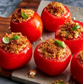 Garlic, Parmesan cheese, basil, and toasted nuts turn brown rice into a superstar stuffing in this Italian-inspired stuffed tomato side dish that’s cooked in the air fryer