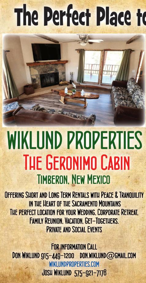 Discover Lincoln County Ruidoso Ruidoso Downs Lincoln Capitan Corona Tinnie 142 Email us at alamodoso@gmail.com or call 806-884-0066 Nichols Ranch 5th Annual Cherry Festival Fathers’ Day Weekend