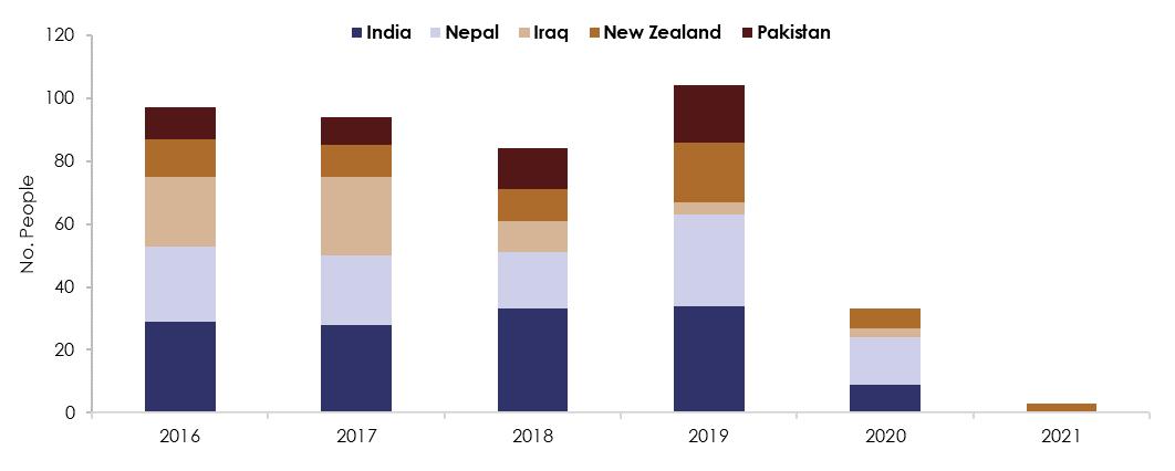 Many of the top 10 net positive migration locations into Edmondson Park are within close proximity including Prestons, and Casula. Next to intra-migration within Edmondson Park, overseas migration represented the second highest source of new residents, with the vast majority relocating from India, Nepal and Pakistan.