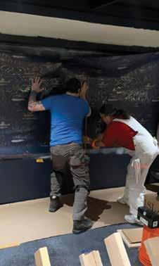 Ben Campbell of Campbell Painting & Drywall installed the wallpaper after www.akbizmag.com finishing the drywall work and priming and painting the exposed brick. He spent about six months on the project, working on different phases as the design came to fruition.