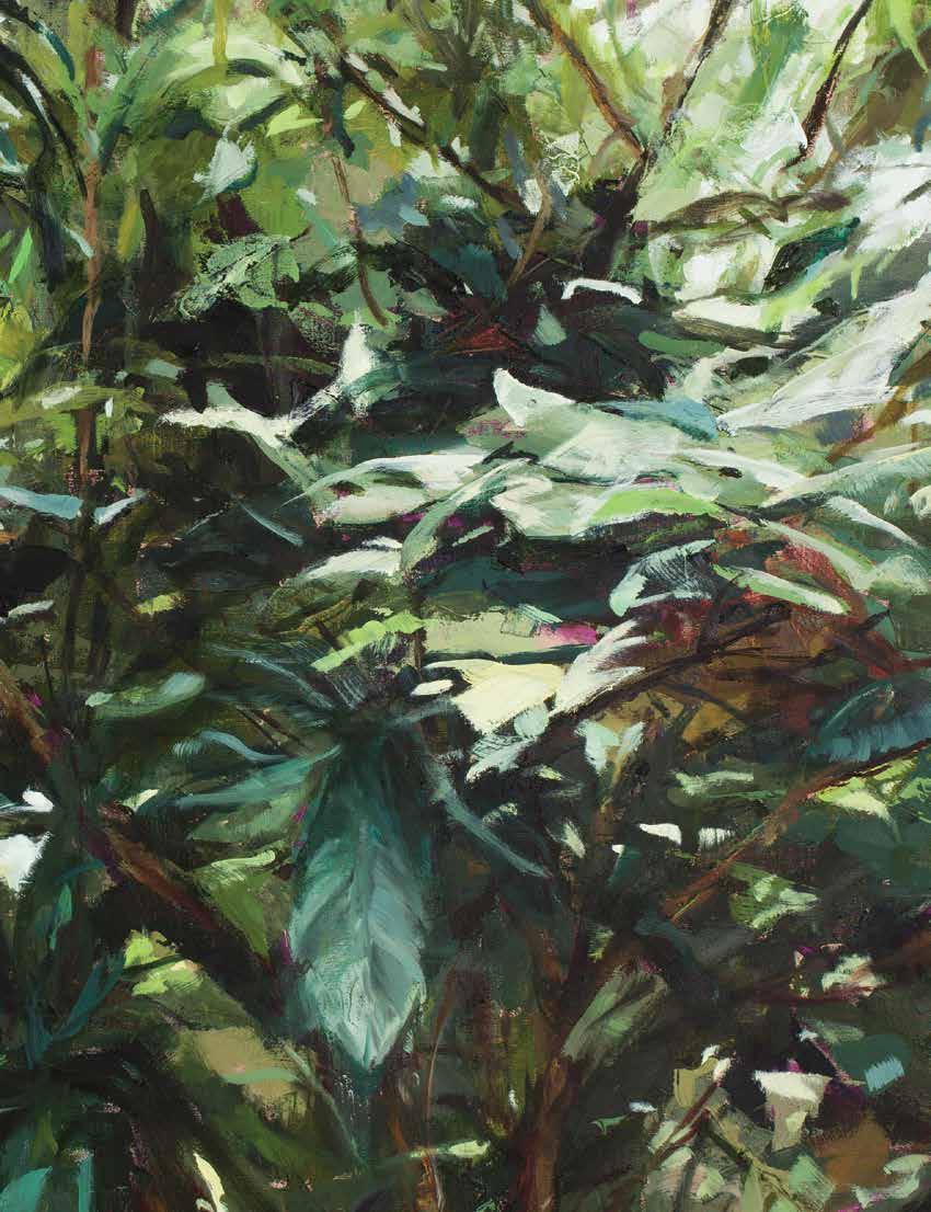 durante sesiones de dibujo en directo, son miles de piezas fabulosas. Por lo demás, cualquier cuadro de la serie pudo titularse El camino de todas las cosas. Chaurand encuadra las escenas inteligentemente, la sección de paisaje representado y la fragmentación de los motivos elegidos proponen diagramas compositivos contundentes y hermosos cuando los observamos a distancia. En sus escritos de crítica de arte, Baudelaire dice que la testi ficación a distancia de un cuadro poderoso nos pone primero frente a una sinfonía pura de forma y color, para luego llevarnos —en la aproximación— al encuentro con la claridad poética de una iconografía. Antonio Chaurand consigue esa magia en la pintura para fijar su viaje vital por el reino de la luz.