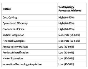 Managers moeten zowel de beloningen als de risico’s van hun dealmotieven begrijpen. Operationele synergiën zijn misschien saai, maar vaak betrouwbaar en goed