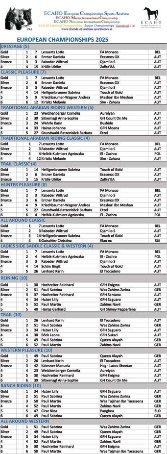 Libyan National Championship 88 Waho Conference - Abu Dhabi 110 British National Championship 160 European Championships Sports Arabians 178