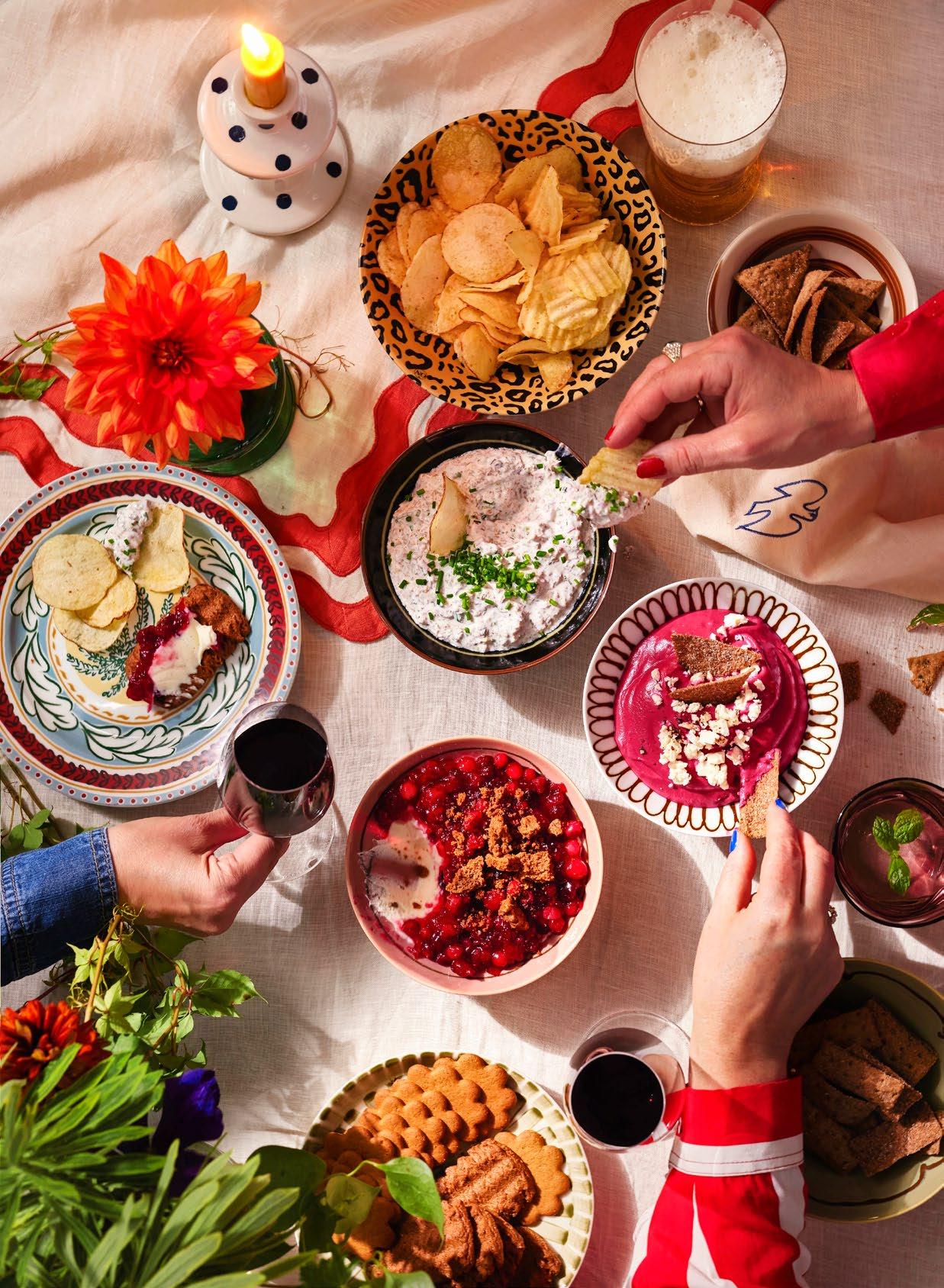 3 x jaettavat herkut Kahden täytteen piirakka Sydänsalaatti-juustokranssi Kolme parasta dippiä