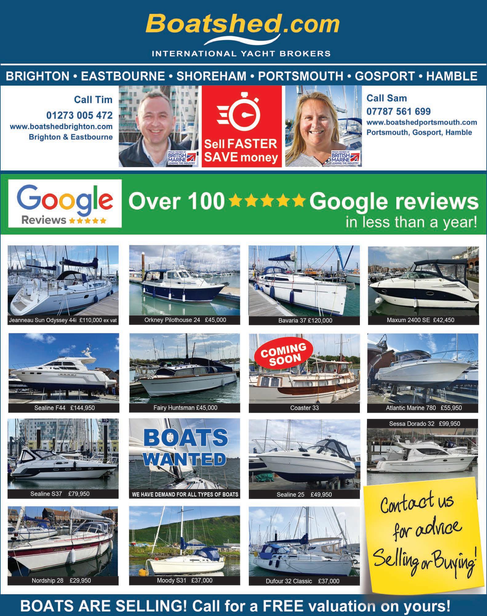 45 To advertise here please call 07596 269681 ALL AT SEA JUNE 2023 Quality LowCostMarineInsuranceQuotationin5Clicksand30Seconds Ournamesays itall! For quick, instant quotationsand cover foralltypeofmarinecraftcontactuson: Insurance-4-boats.co.ukisatradingstyleofPorthcawlInsuranceConsultants(UK) Ltd PICisauthorisedandRegulated by the Financial Conduct Authority.Alltelephonecallsarerecorded. www.insurance-4-boats.co.ukTelephone:01656784866 Fax:01656784872quotes@insurance-4-boats.co.uk Y rs to be Discovered Visit Lake Yard in Poole Harbour and you’ll soon realise this is that special place you’ve been waiting to discover. With its forty-berth marina, 100 deepwater swinging moorings, working boatyard with fifty-tonne hoist and relaxing waterside restaurant, Lake Yard is really worth a visit by sea or land. Lake Yard Hamworthy, Poole BH15 4DT 01202 674531 | office@lakeyard.com WWW.LAKEYARD.COM Official UK & Ireland Boston Whaler Distributor MARINA DOCK MARINA DOCK Visitor moorings available * Subject to exclusions and limitations – see website for details. Information correct at time of production. GJW Direct is a trading name of Munich Re Specialty Insurance (UK) Limited, registered in England: 01262636, Union, 2-10 Albert Square, Manchester, M2 6LW. Authorised and regulated by the Financial Conduct Authority (FRN 310539) and acting as a managing general agent on behalf of certain insurers. Did you know?, GJW Direct boat insurance has extra features if you moor your boat in a recognised UK marina. 0%* Interest available Get a quote today www.gjwdirect.com 0151 473 8000 All at Sea - Classified advert - 132x80mm - v6.indd 1 21/11/2022 14:21:15 ADVERTISE HERE PLEASE CALL 07596 269681 BRITAIN’S MOST READWATERFRONT NEWSPAPER Get a quote in 20 seconds On cover in 2 minutes Low on-line premiums craftinsure.com 03452 607888 Authorised and regulated by the Financial Conduct Authority Boat insurance made easy Get the App - craftinsure.com/app Professional Boat Valeting www.marinecleanvaleting.co.uk sales@marinecleanvaleting.co.uk Tel: 01489 570757 • Full Exterior Valets • Full Interior Valets • Compound and Waxing • New and Used Boat Handover Valets • Contract Valets • Teak Cleaning • Anti-Fouling • GRP Repairs • Carpet and Upholstery Cleaning • Engine Room and Bilge Cleaning • Cover Cleaning and Re-proofing “Synonymous with Valeting Excellence”