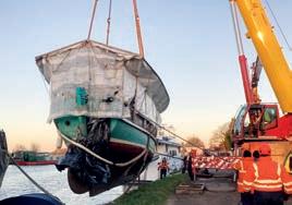 “Initial recovery e orts were hampered by concerns over the integrity of the fragile wooden hull. A second attempt succeeded in January 2024, with contractors safely raising and transporting the vessel to local boat builders RW Davis & Son Ltd, who generously supported the operation/project by providing secure storage, and preservative measures.”