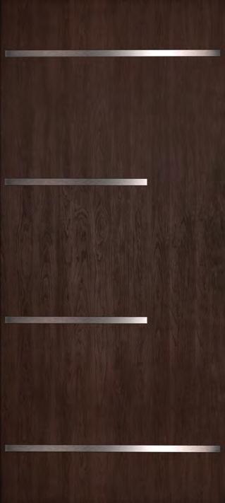 CONTEMPORARY CHERRY C601 cherry woodgrain textured fibreglass door with stainless steel lines 28 pre-finished in raven stain