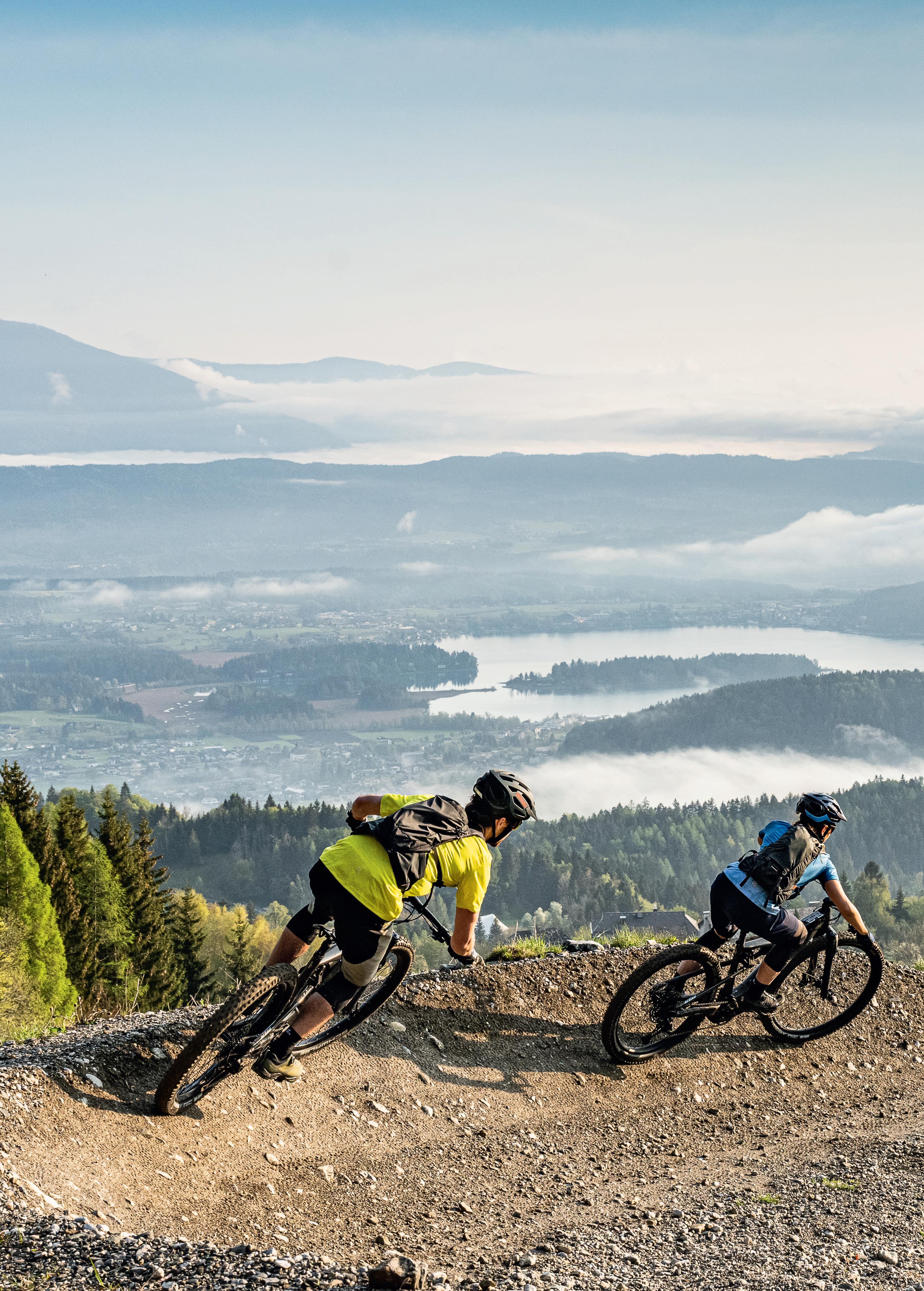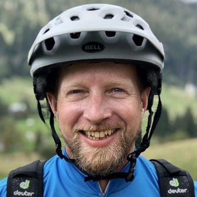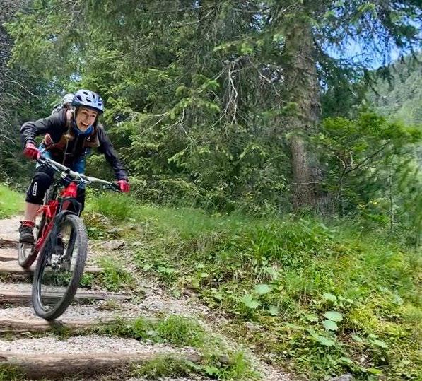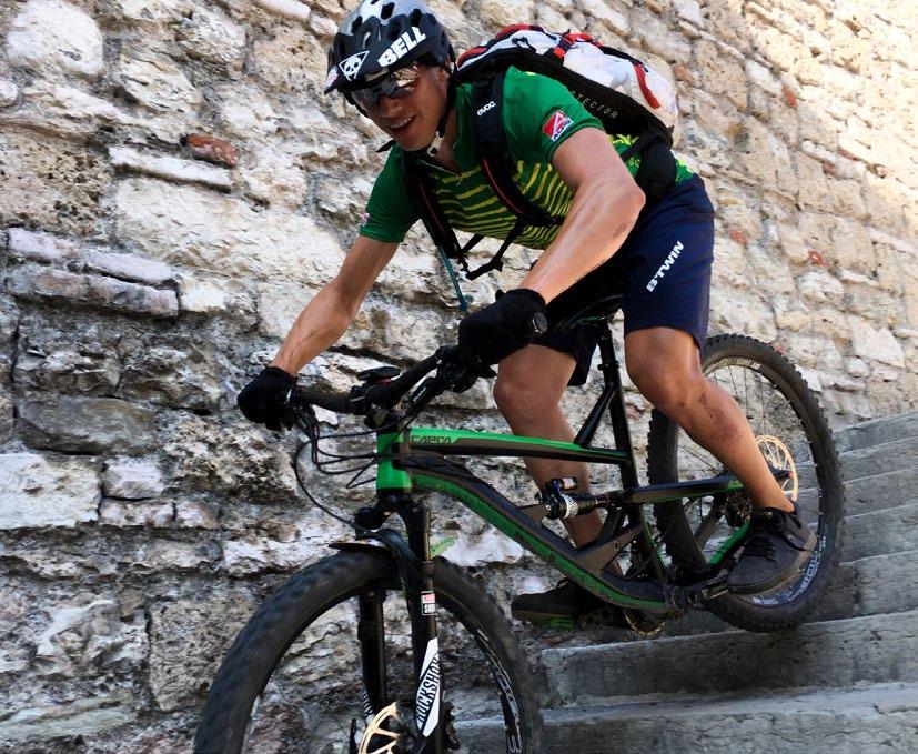 » Wir kurbeln täglich max. 500 Höhenmeter, um alle Kräfte für die DownhillStrecken zu sparen. Dafür sollten wir richtig ausgerü stet sein. Wir empfehlen ein vollgefedertes All Mountain-, besser noch Enduro-Bike mit 150-170 mm Federweg. Um die Trails sicher genießen zu können, sind Knie- und Ellbogen-Protektoren sowie Bikebrille/Googles Pflicht. Auch ein Protektor-Rucksack sowie Full-Face Helm machen Sinn. «