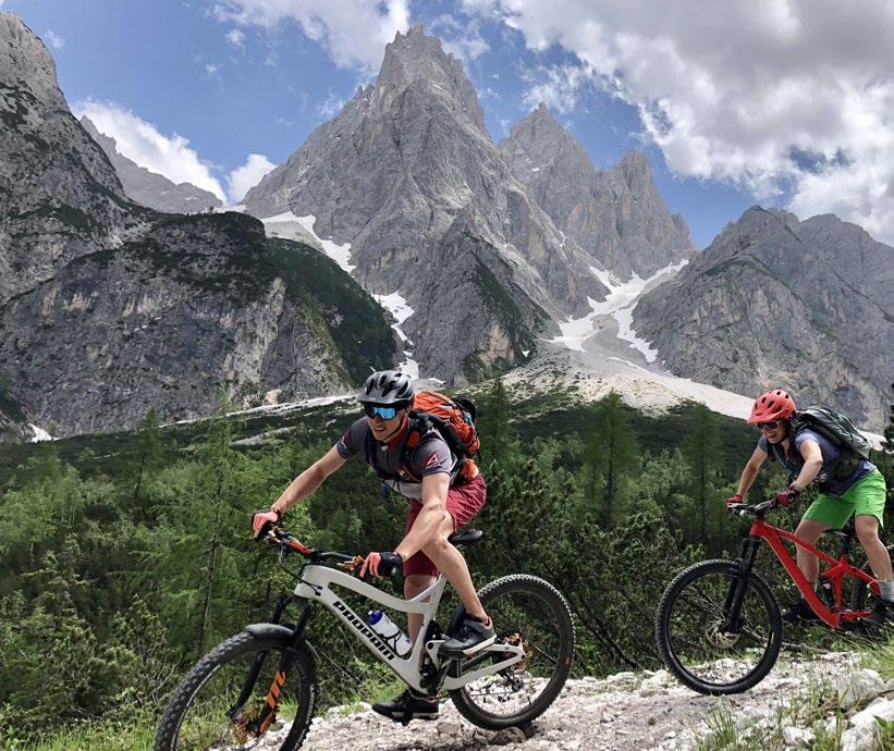 Neben den Transalp-Etappentouren werden unsere Events immer beliebter. Ein festes Hotel ist dabei Basis für ein abwechslungsreiches Tourenpro gramm, das allmorgendliche Kofferpa cken entfällt. Je nach Tagesform kann man hier entscheiden, ob man eine schwere Runde dreht oder den Tag lieber etwas gemütlicher gestaltet. Ideal also auch für Freunde und Paare, die einen gemeinsamen Bikeurlaub erle ben wollen, aber nicht unbedingt auf dem gleichen Level fahren.