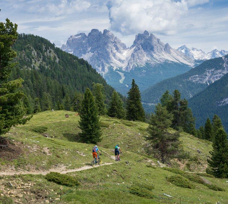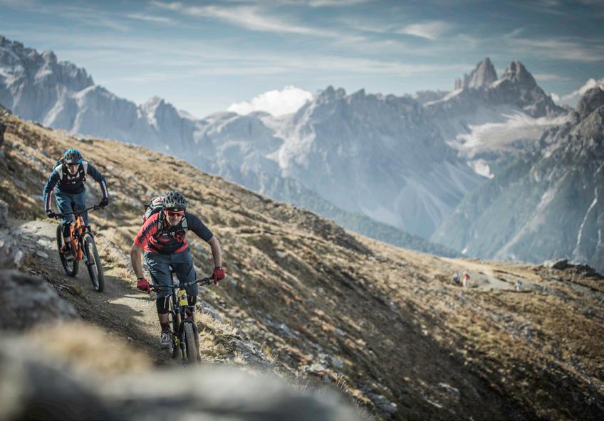 2. Tag Der knapp 2300 Meter hohe Gip fel des Kronplatzes bildet den perfekten Start für diese Enduro-Woche. Gebaute Bikepark-Strecken, wie z.B. Gassl oder Furcia bilden dabei den spektakulären Auftakt. Der Ausblick reicht vom Alpen hauptkamm bis zur Marmolata. Am Nachmittag Bikeshuttle nach St. Kas sian. 55 km, 4200 tm, 200 hm