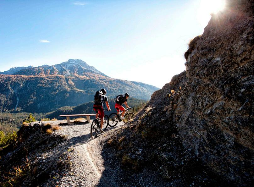 Die Schweizer Gletscher und das Engadin sind unangefochten der alpine Höhepunkt. Von hier aus trat der Alpentourismus vor 200 Jahren seinen Siegeszug an. Die majestätische Bergwelt rund um St. Moritz hat auch heute noch nichts von ihrer Fas zination eingebüßt. Im Gegenteil! Mit dem Mountainbike lässt sich die Natur intensiver erleben als jemals zuvor. Die Strecke von St. Anton an den Comer See steckt voller Mountainbike-Klassiker, die man einmal im Leben erfahren haben sollte. Vorausgesetzt, man hat das Fahrkönnen und die Kondition dazu.