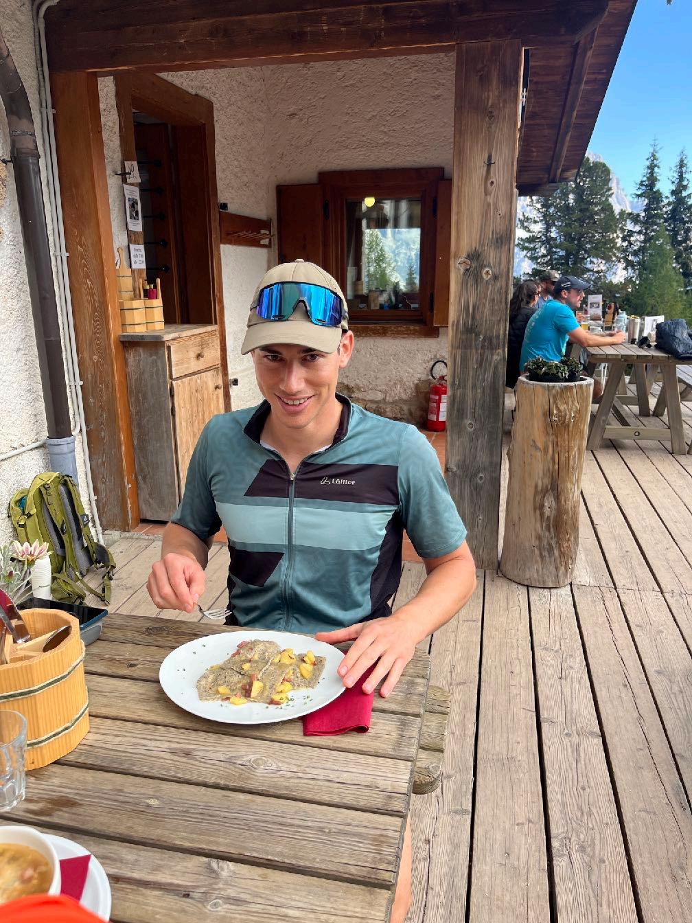Aufwachen auf über 2000 Meter Höhe. Tipp: Wecker stellen und den Sonnenaufgang über den Dolomiten nicht verpassen! Nach dem ausgiebigen Frühstück starten wir direkt mit einem Wake-Up Trail in den Tag. Danach treten wir auf einer Schotterstraße hinauf zur Maurerberger Hütte.