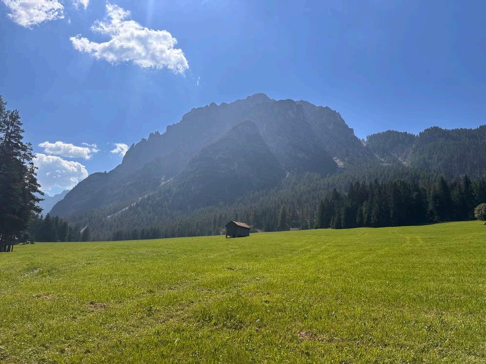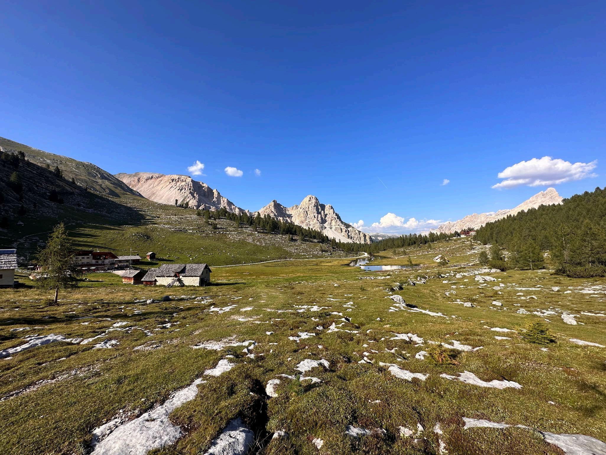 Die Steigung hoch aufs erste Fanes Plateau wird für manchen zur wahren Grenzerfahrung. Doch irgendwie haben es bisher alle geschafft. Die bombastische Natur entschädigt in jedem Fall für alle Mühen. Vorbei am kleinen Bergsee geht es durch Kiefernwälder