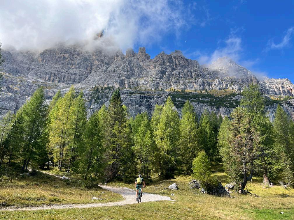 Die E-MTB Transalp Civetta ist eine der schönsten Touren überhaupt. Die weißen Dolomitenberge im Naturpark Fanes, zuvor ein unglaublicher Auftakt an der Plose, die Übernachtung auf dem Würzjoch, die Trails zu den Lüsener Almen. Alles unbekannte Wege und noch abseits der Massenströme. Ebenfalls Traumtrails im Val di Zoldo. Die Forcella Ambrizola ist dabei das hochalpine Highlight der Tour. Unbedingt erleben.