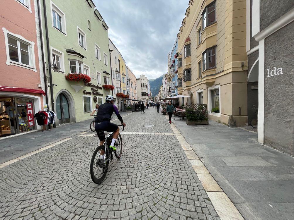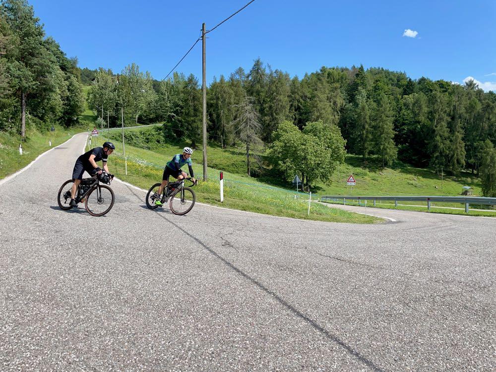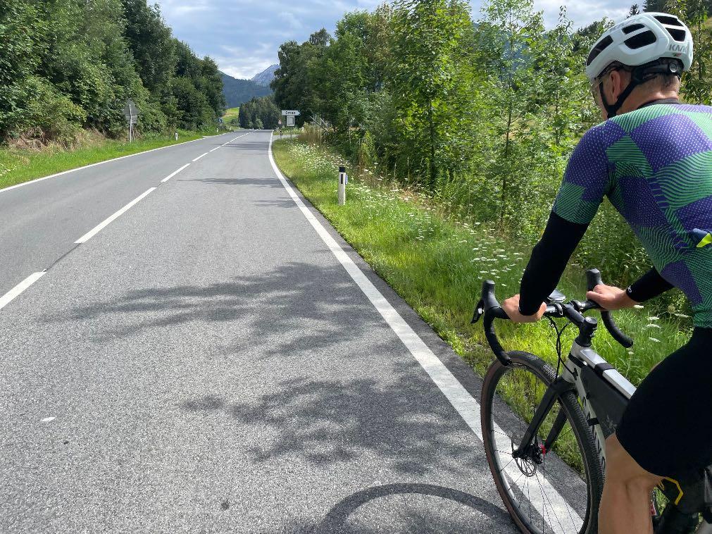 Now comes the long, gravelly descent down into the Inn Valley. On the Inn Valley cycle path, it's time to put in another few kilometers before the final afternoon climb to Zirl. We ride up to Axams via the main road. Once at the top, we enjoy our first cold drink and recall the many great impressions of the day.