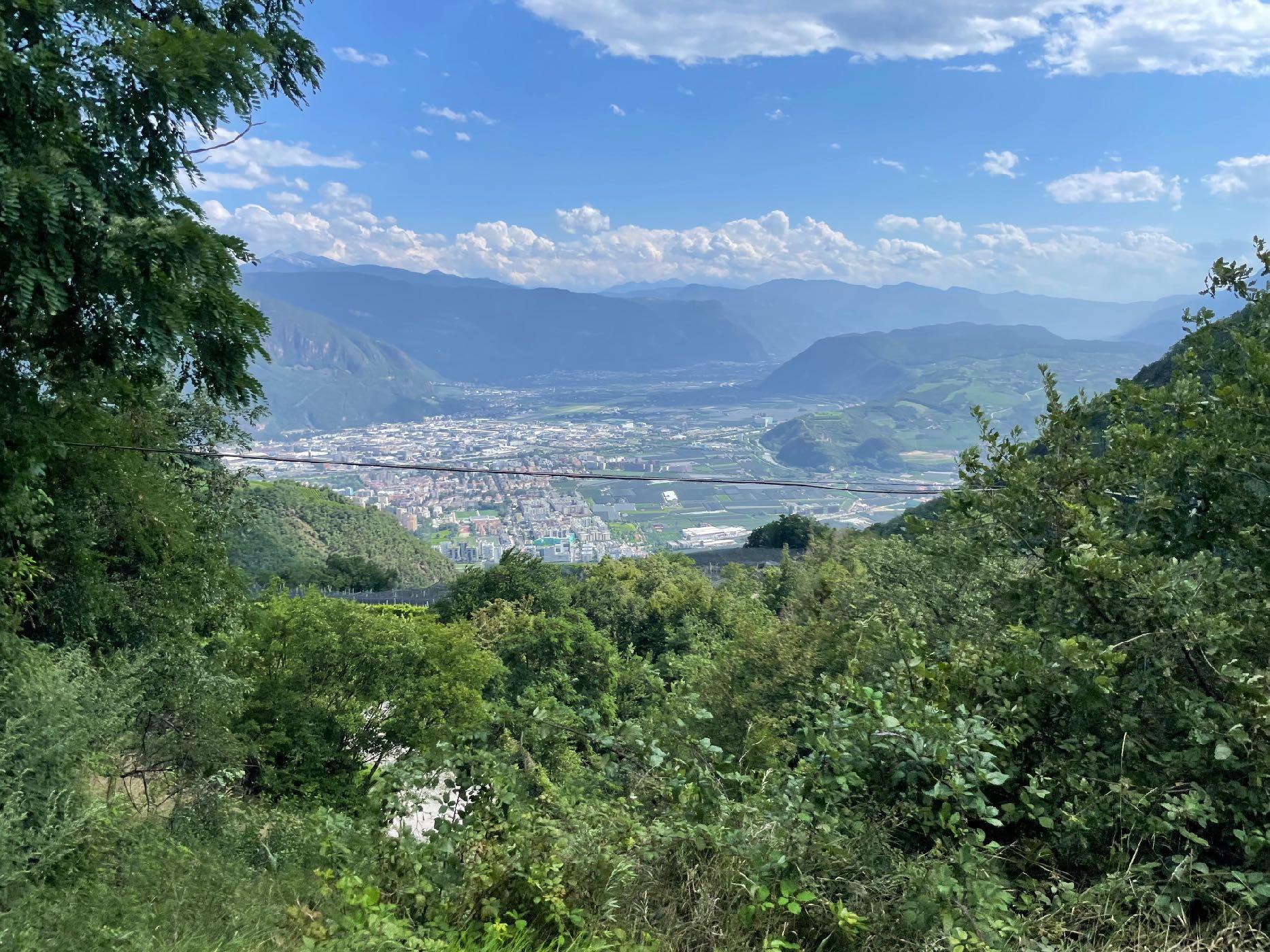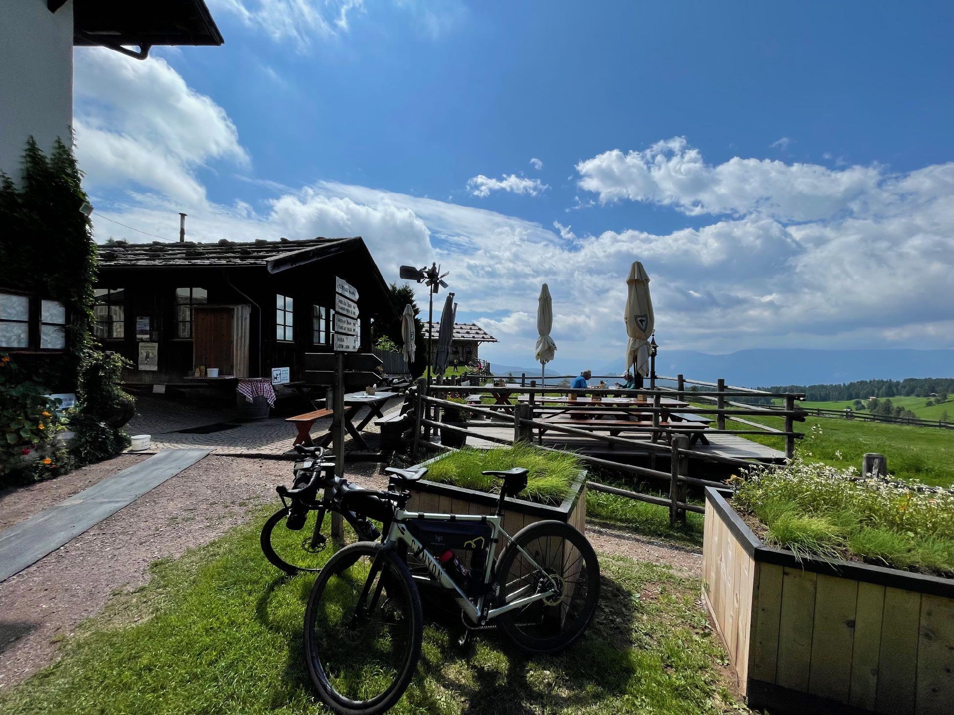 and forest paths leads us to picturesque huts with lush pastures. The famous Haflinger horses are at home here. The panoramic views also extend from the Dolomites to the main alpine ridge with its shimmering white glaciers. After 1400 meters in altitude, we have earned a good break at the Leadner Hut and enjoy the view. Until our lunch break at the Langfenn pilgrimage church, we experience a variety of routes. On the long descent on a small asphalt road down to Bolzano, the brake pads are glowing. We can't avoid a few tunnel passages. The hot summer is here again.