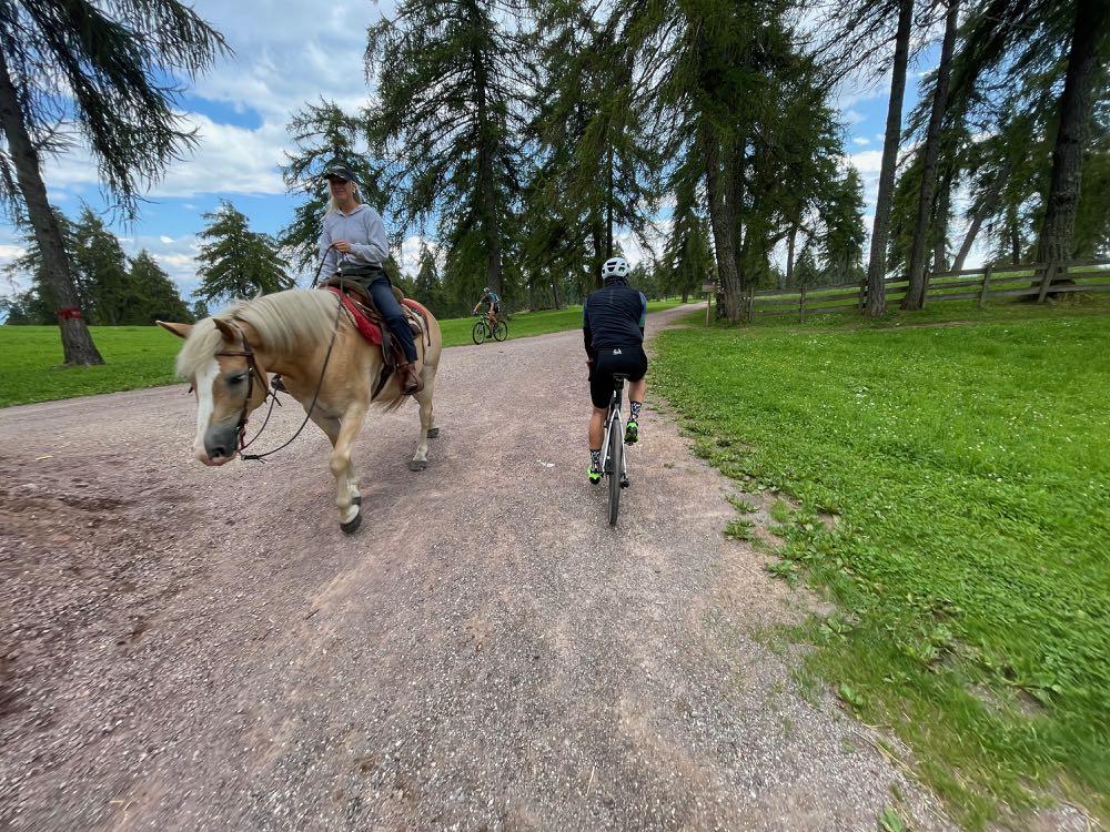 Our fitness levels are challenged again today. The ascent to Hafling is a mixture of gravel and road. Almost 1100 meters of altitude are covered over 12 kilometers. Up to the cappuccino break, we tackle another 300 meters in altitude. On the Saltner high plateau various path conditions await us; concrete, gravel, meadow paths and trails. Mostly downhill in the afternoon. There are also tunnel passages. So make sure you take your lights with you. Over 20 kilometers downhill in total!
