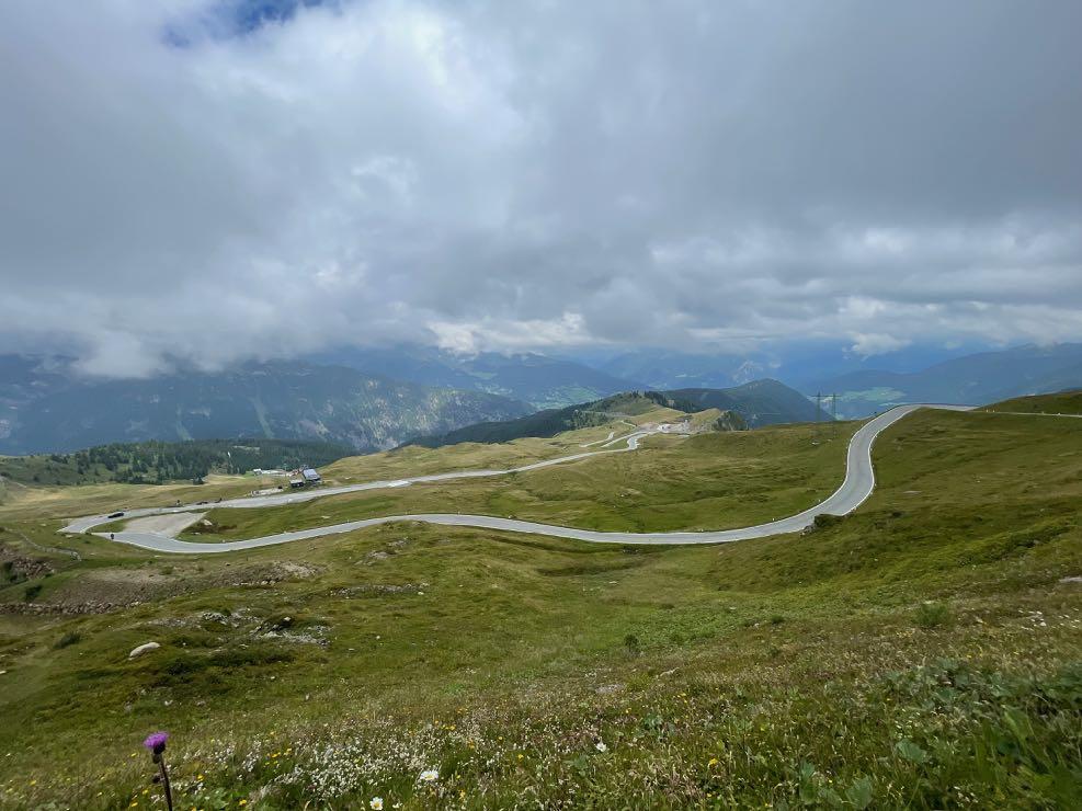 View back to the overcast main alpine ridge. The last hairpin bends before the top of the pass.www.go-alps.com