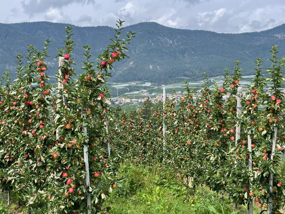 The cycle path into the Val di Non starts at the Mendel Pass. Linger and enjoy.The steep slopes are characterized by apple orchards and vineyards.