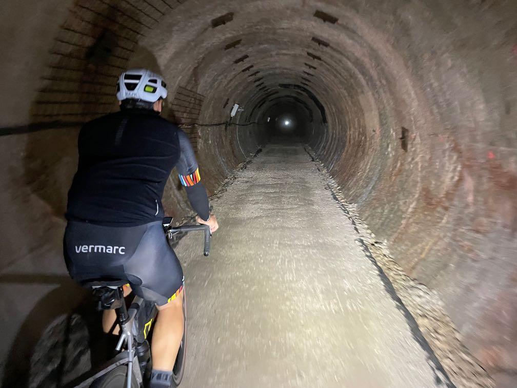 Approach to the Galeria de Terres. Our gravel bikes roll through this tunnel.Almost always on the same level, initially gently downhill.