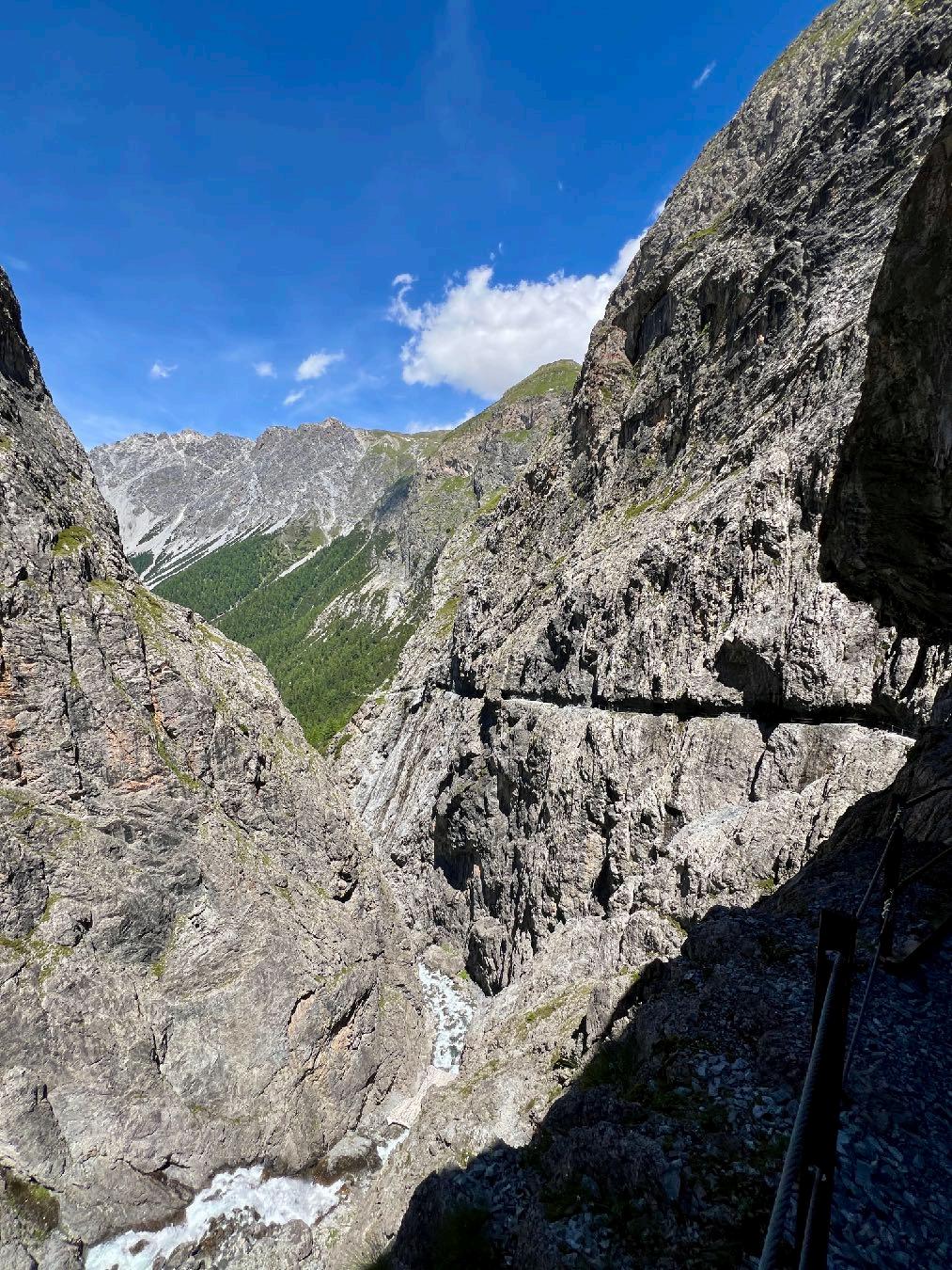 Einmal im Leben muss man in der Uina Schlucht gewesen sein. Mit Hilfe eines Bikeshuttles nach Schlinig ist dies auch für unsere Level 2-3 Gruppen möglich. Schiebend wird von allen dann die gewaltige Schlucht gemeistert. Die Eindrücke bleiben ein Leben lang. Das Dreiländereck bietet zudem unzählig viele Natur- sowie Endurotrail Varianten. Wir finden für jeden die richtige Abfahrt.