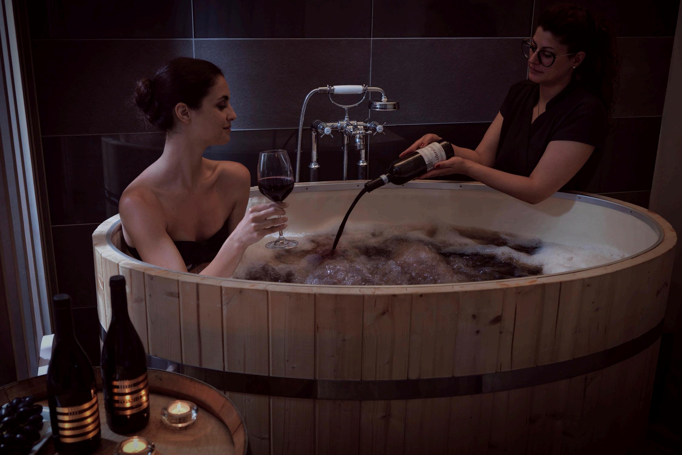 bagno al vino - calice di vinomassaggio parziale di coppia