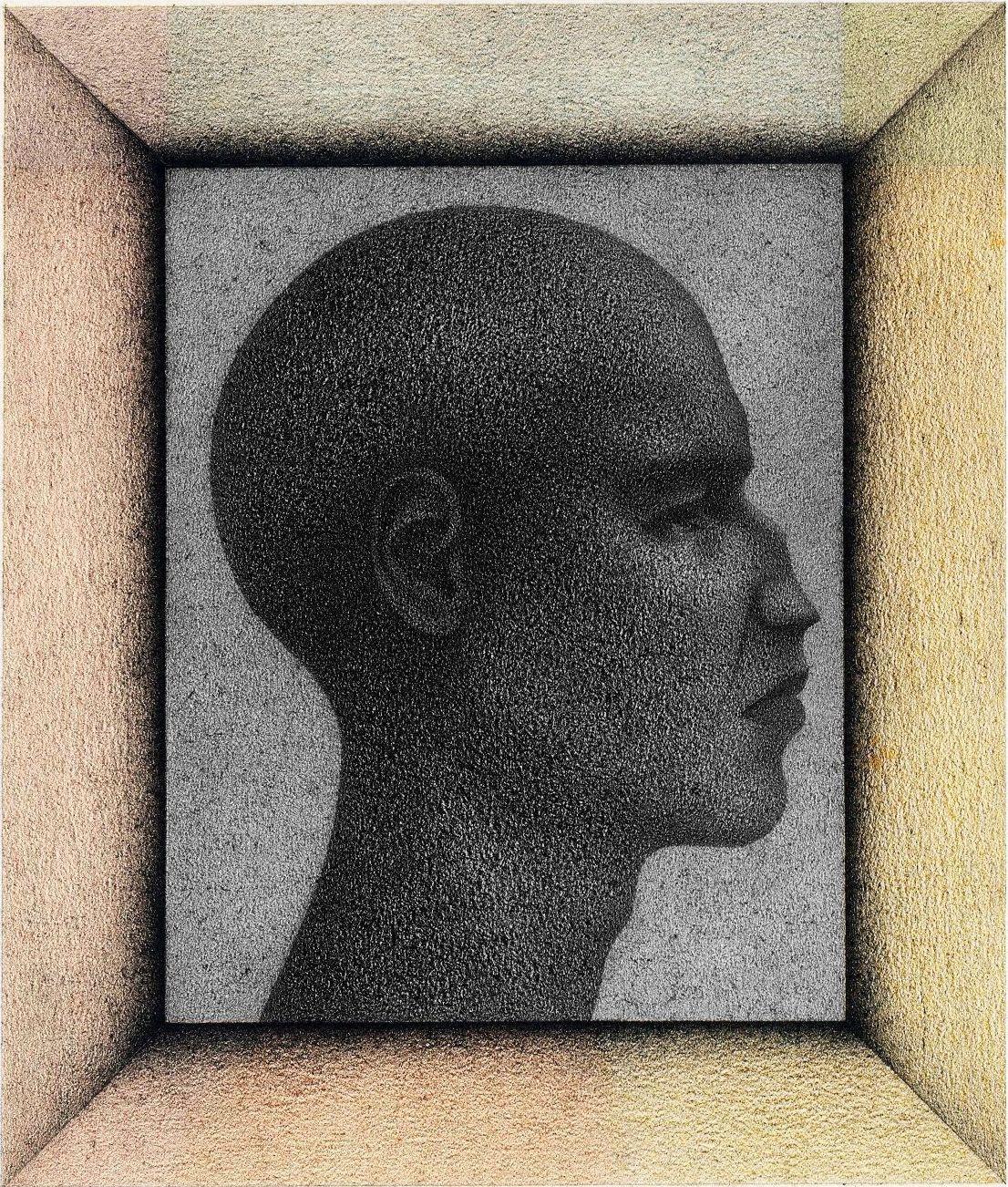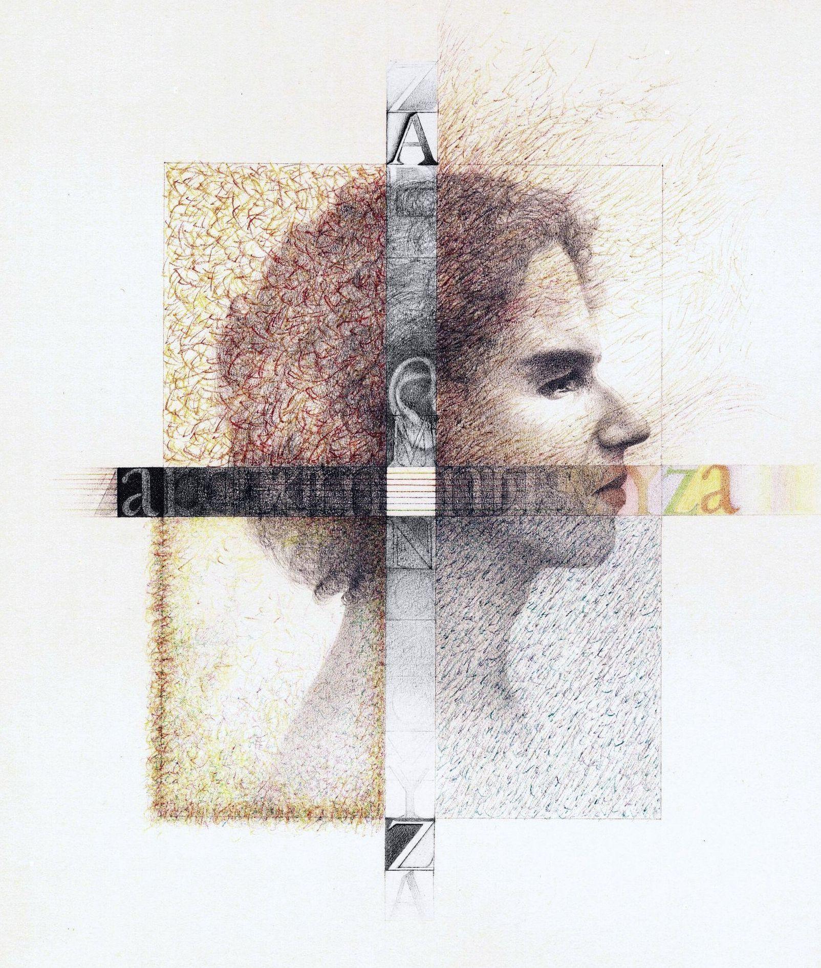 ... 42 desenhos divididos em duas séries de 21, a grafite e lápis de cor. Uma das séries se desenvolve a partir da silhueta do rosto do artista e a outra a partir do retrato 3x4. A soma dos desenhos constituiria, portanto, um autorretrato tão insistente quanto facetado. Se o título de um lado afirma a unidade do indivíduo, de outro pluraliza o sujeito… desenhos como que buscam definir uma face… somam elementos do universo cultural do artista…