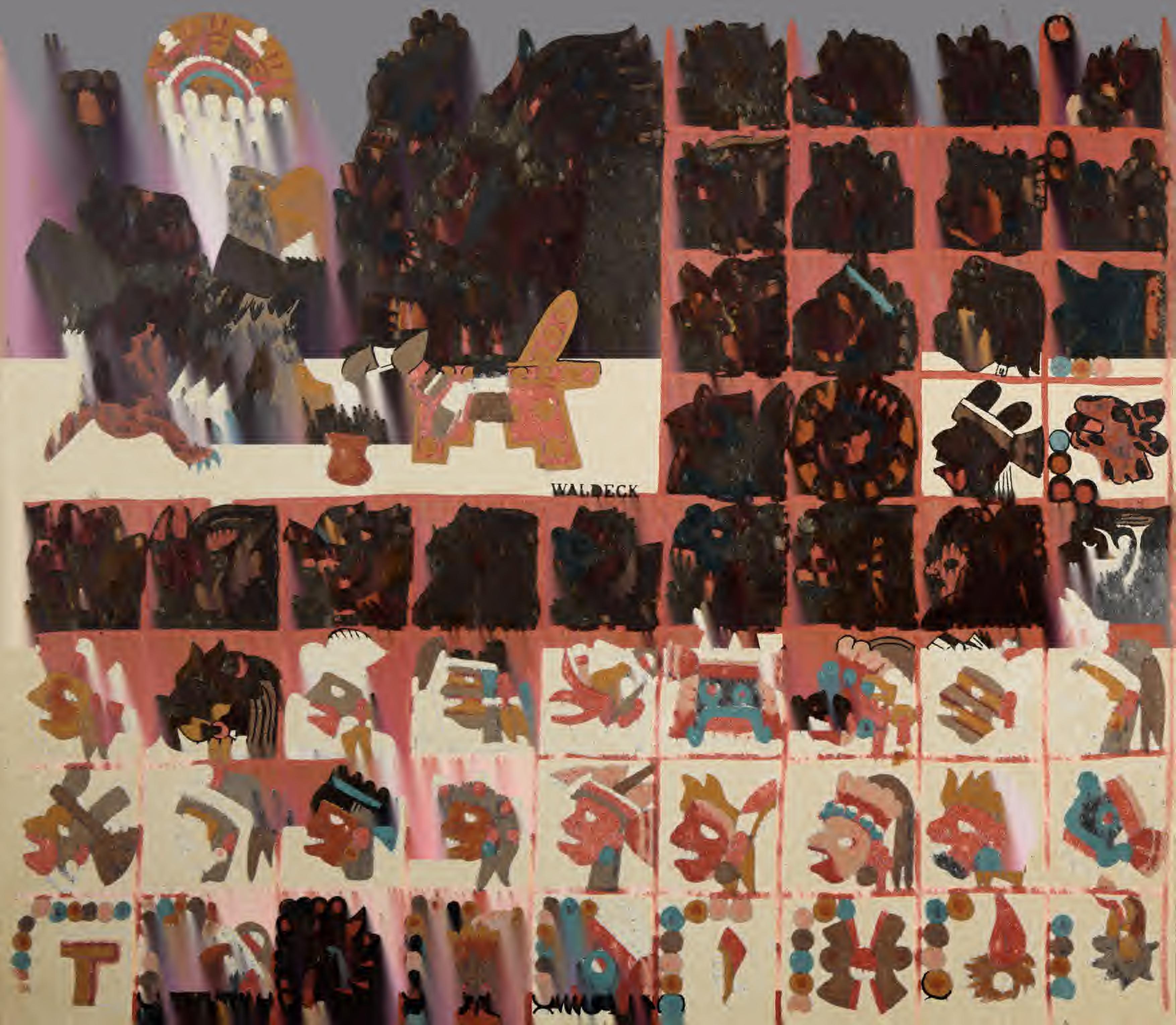 The facsimile illustration from either the London or Berlin edition of 1900 (Tonalamatl of the Aubin collection; Tonalamatl der Aubin'schen Sammlung)