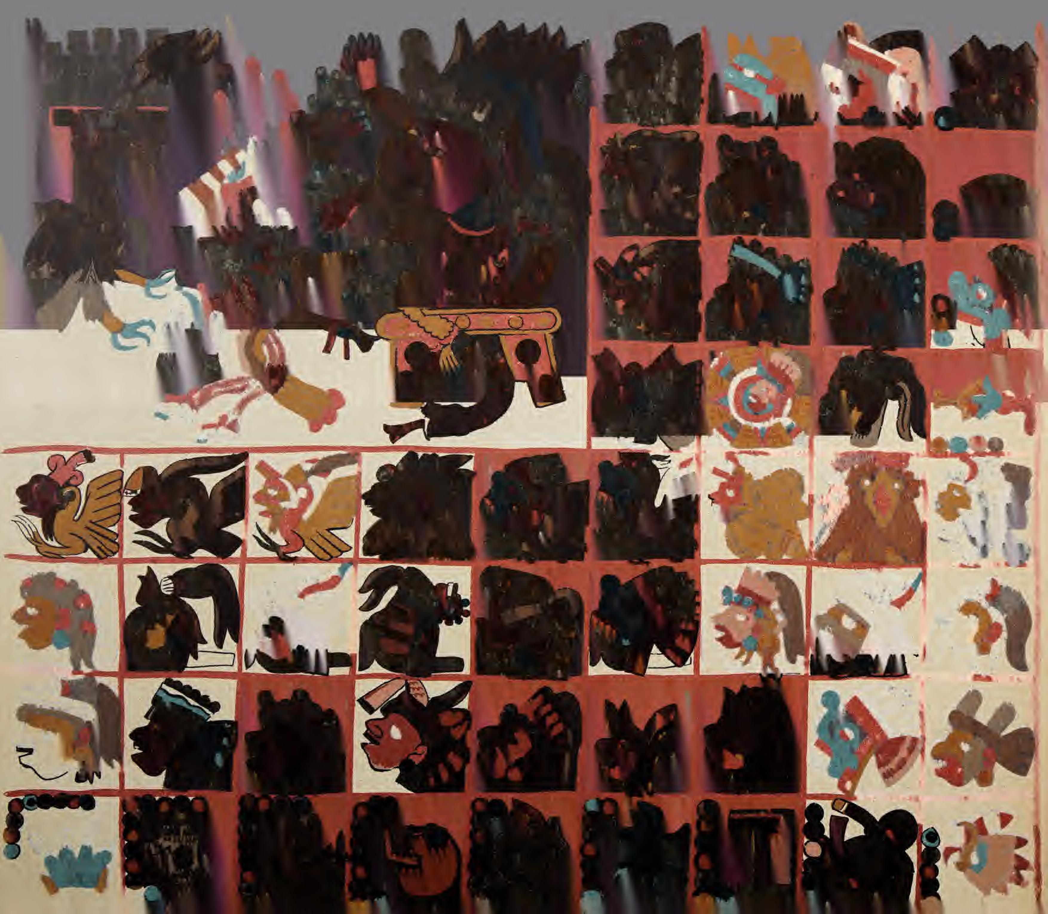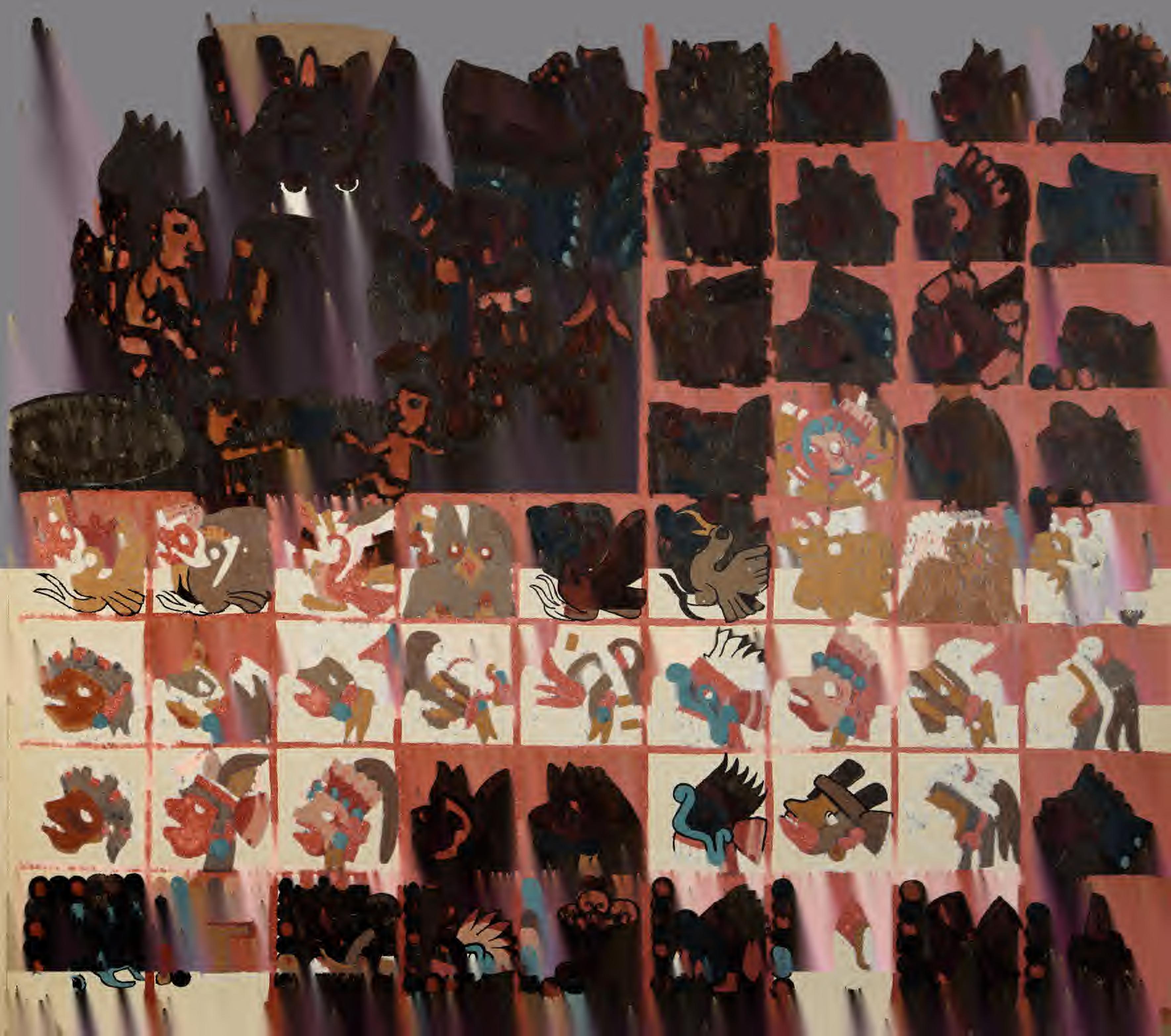 The Aubin Tonalamatl is a codex that reads from top to bottom and from right to left. The Tonalamatl (bark paper [or book] of the days) was used by Aztec priests in a divination ritual.