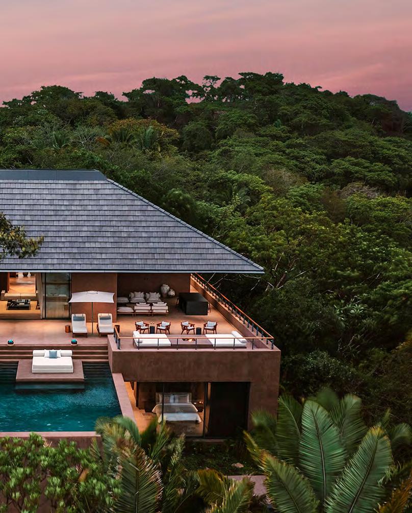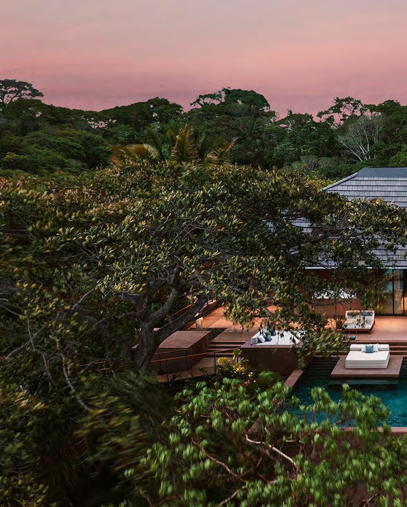 Cada una de las 105 villas independientes y casas en los árboles, repartidas en más de 32 hectáreas de denso dosel de la jungla, tiene su propia piscina privada y cuenta con amplias vistas de la selva o el azul del Océano Pacífico.