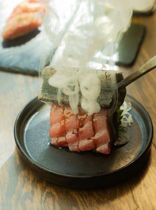 El menú, diseñado con maestría, combina técnicas japonesas con ingredientes locales. Entre los platillos destacados se encuentran el sashimi de atún con hoja santa, que equilibra la frescura del pescado crudo con el toque especiado de la hierba mexicana; y el shortrib ahumado, un plato que despierta los sentidos con su textura suave y su sabor intenso. Además, los spicy udon carbonara, los makis y los handrolls son una muestra de cómo Okasanta logra reinventar clásicos de ambas culturas.
