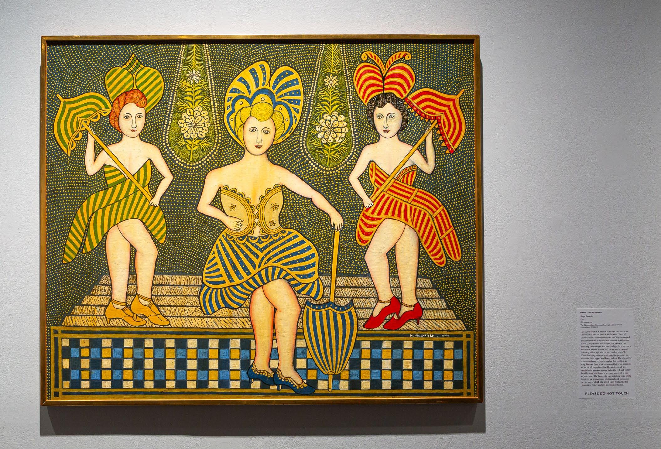 In Stage Beauties, a dazzle of colors and patterns show-cases a trio of female performers [Figure 1] Each of the “beauties” has been outfitted in a boldly striped costume that both rhymes and contrasts with those of her companions. The longer one looks at the painting, the stranger and more delightful it becomes. While the women’s faces and torsos are presented