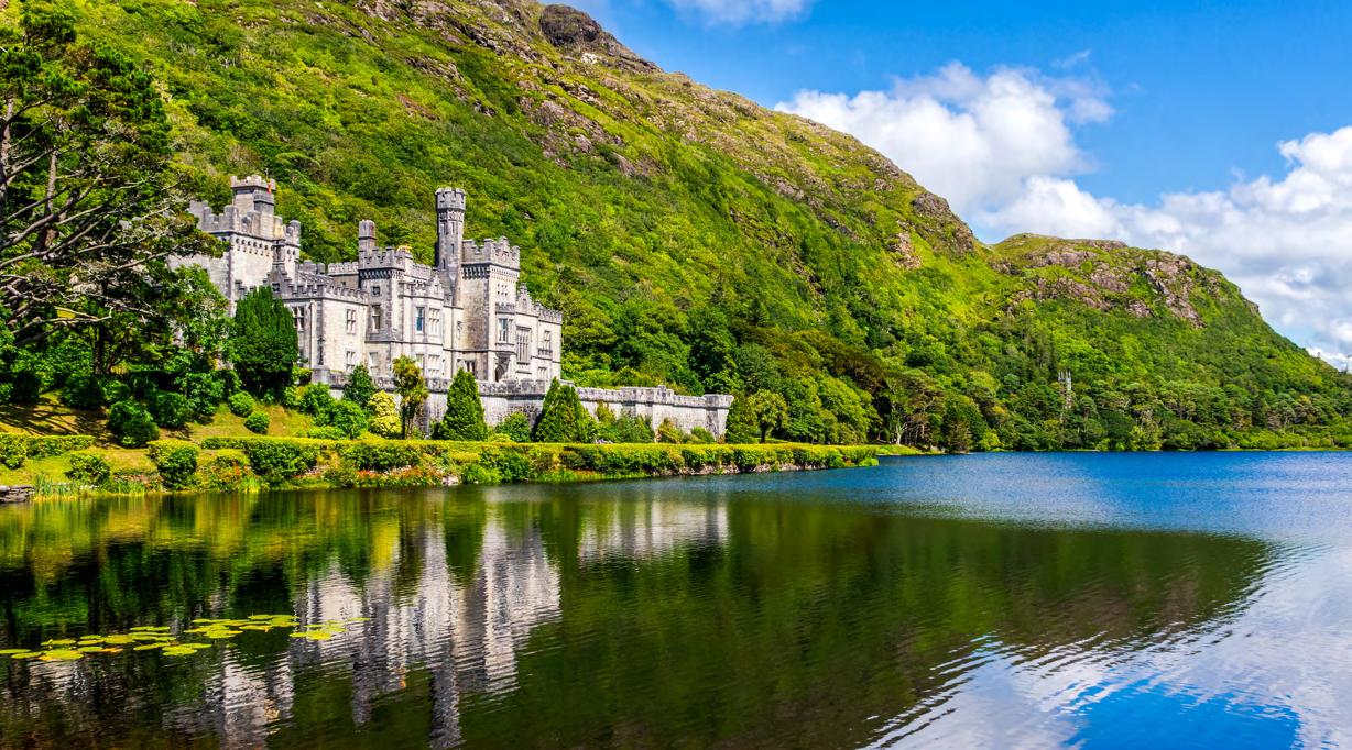 DAY 7 Breakfast. Tour the loop of Connemara and its breathtaking scenery of hills and bogs. Visit Kylemore Abbey & Victorian Walled Garden. Free evening in Galway.
