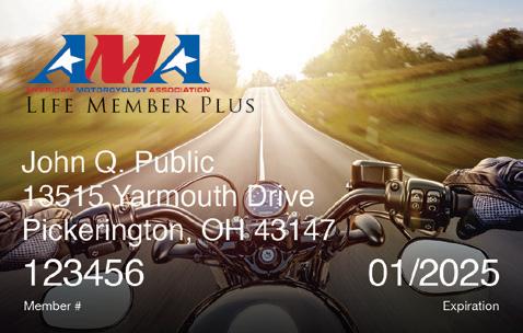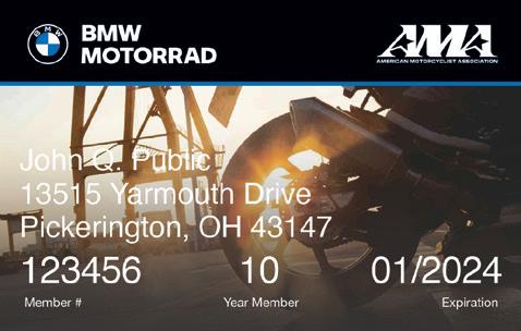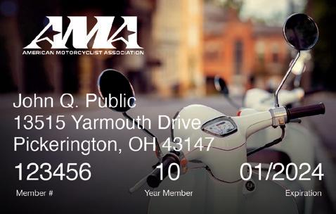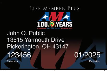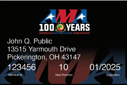 SCAN THE QR TO GET YOUR CARD TODAY CALL (800) AMA-JOIN OR VISIT AMERICANMOTORCYCLIST.COM/100YEARMEMBERSHIP CELEBRATE THE AMA’S CENTENNIAL WITH YOUR Limited-Edition 100-Year AMA Package THIS CARD HAS PRIVILEGES! 100-YEAR MEMBERSHIP PACKAGE .1 Year AMA membership* .100-year membership card .Embroidered anniversary patch .Anniversary decal .Limited edition 100-Year Anniversary pin .Limited edition 100-Year Anniversary t-shirt .Discount AMA Motorcycle Hall of Fame Induction ceremony tickets 100-YEAR LIFE MEMBER PLUS PACKAGE .1 Year of Life Member Plus Enrollment* .100-Year Life Member Plus membership card Limited edition Life Member 100-Year Anniversary t-shirt .Embroidered anniversary patch Anniversary decal Limited edition 100-Year Anniversary pin .Discount AMA Motorcycle Hall of Fame Induction ceremony tickets *Available for other membership types. Visit AmericanMotorcyclist.com /100YearMembership for full details.