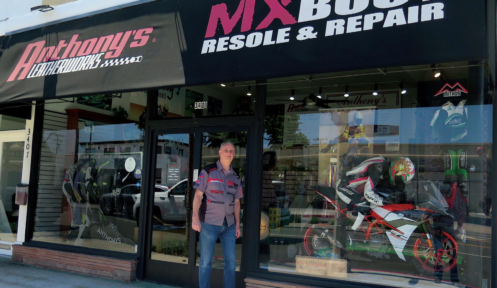 boots awaiting repair on a trip to Alpinestars HQ in Torrance, Calif., one day. Anthony’s had been doing all A’Stars’ warranty work as it broke into the U.S. leathers market in the 1990s (and it needed a lot of warranty work at first). “Why don’t we do boots, too,” they asked? Now there are boxes of soles and parts for all your major MX boots lining the walls, and decades of experience.