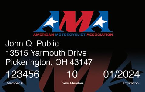 American Motorcyclist is the monthly publication of the American Motorcyclist Association, which represents motorcyclists nationwide. For information on AMA membership benefits, call (800) AMA-JOIN or visit AmericanMotorcyclist.com. Manuscripts, photos, drawings and other editorial contributions must be accompanied by return postage. No responsibility is assumed for loss or damage to unsolicited material.
