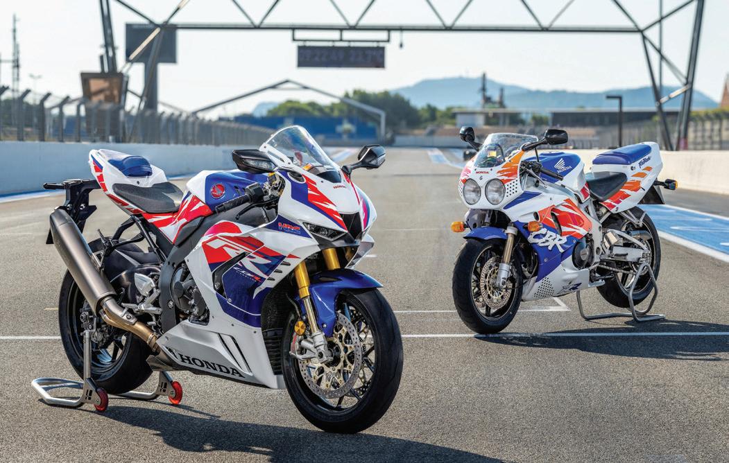 Honda’s original ’93-spec CBR900RR (right) with Big Red’s latest CBR1000RR-R SP, which is blessed with the Fireblade designation 30 years after the name was rejected by American Honda staff. Hindsight is 20/20, right?