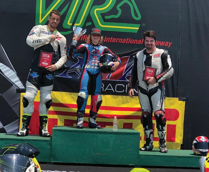 LEFT: COLLINS WITH PLENTY OF HARDWARE AT THE 2022 AMA FLAT TRACK GRAND CHAMPIONSHIP. COLLINS WORKS HARD AND TRAINS FOR MOMENTS LIKE THAT. SHE SPENDS A LOT OF HER TIME TRAINING AT THE NEXT LEVEL TRAINING FACILITY IN GEORGIA, AND SHE ALWAYS REMEMBERS TO HAVE A GOOD TIME.