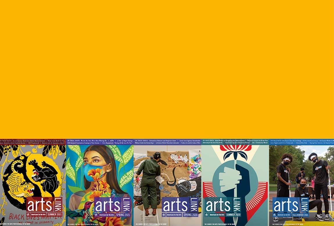 I want to thank all of you for what you bring to your communities, and I want to thank you for being members of Americans for the Arts. The staff, board, and I are encouraged as we work with you, amplify your good work, and find new ways to support the arts in America. As you renew your membership for 2022, you can count on Arts Link magazine to continue to probe key issues and highlight the amazing work you do across the country.