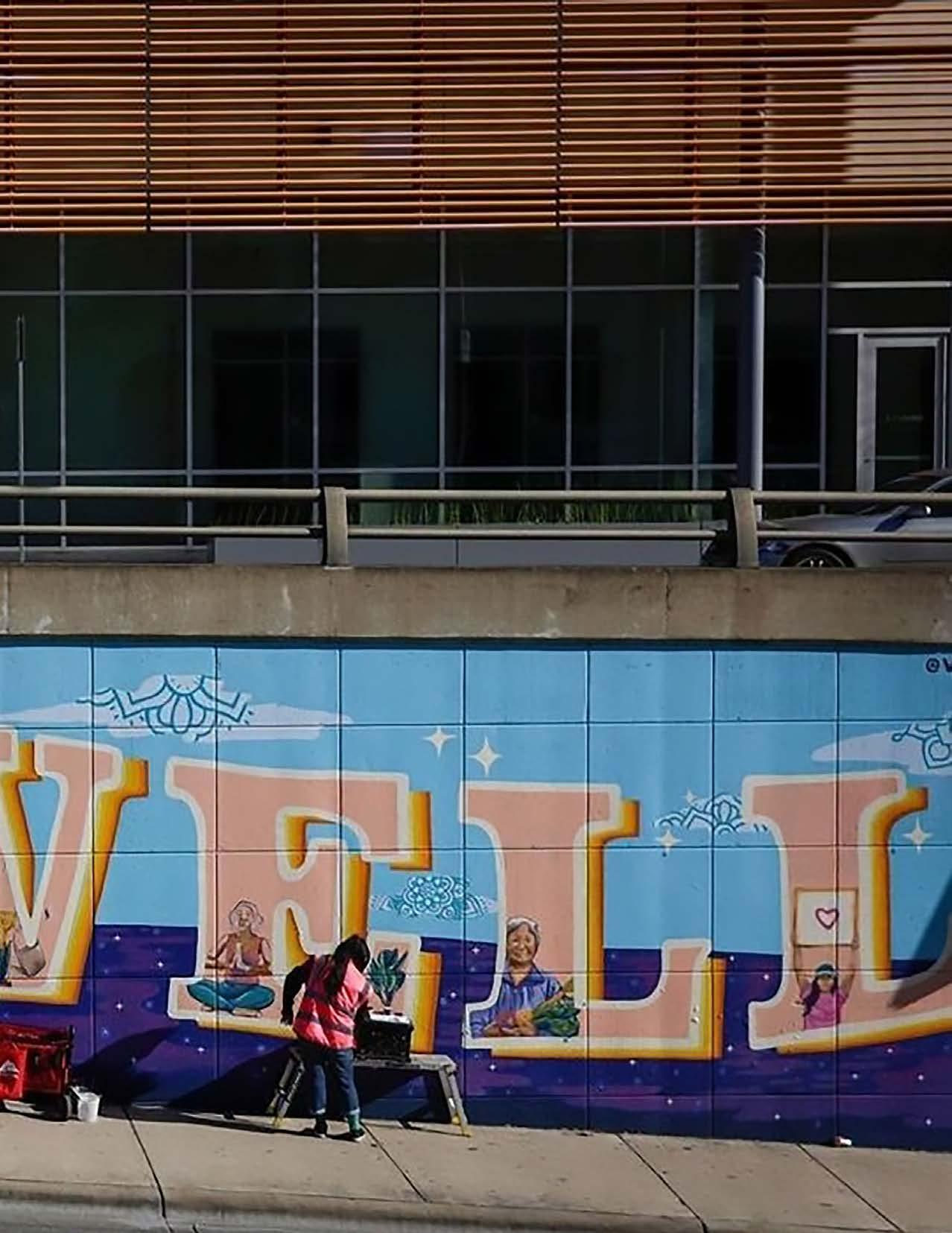 In response to the pandemic, Austin’s Economic Development Department’s Art in Public Places (AIPP) program launched the Be Well Murals, a largescale mural project of positive messages about mental and physical health.